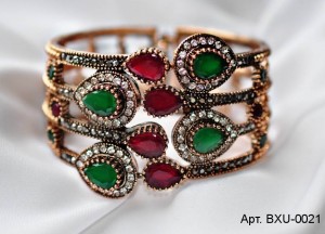 Украшение из коллекции «Великолепный век». Ювелирный сплав, вставки из стразов и имитации натурального камня. Размер браслета 18-19,5 см.