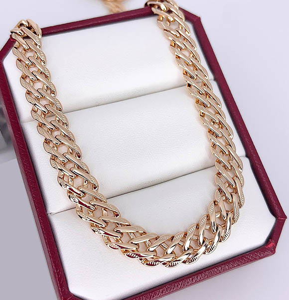 Гипоаллергенная бижутерия. Покрытый золотом 585 пробы ювелирный сплав. Длина 55 см, ширина 8 мм.