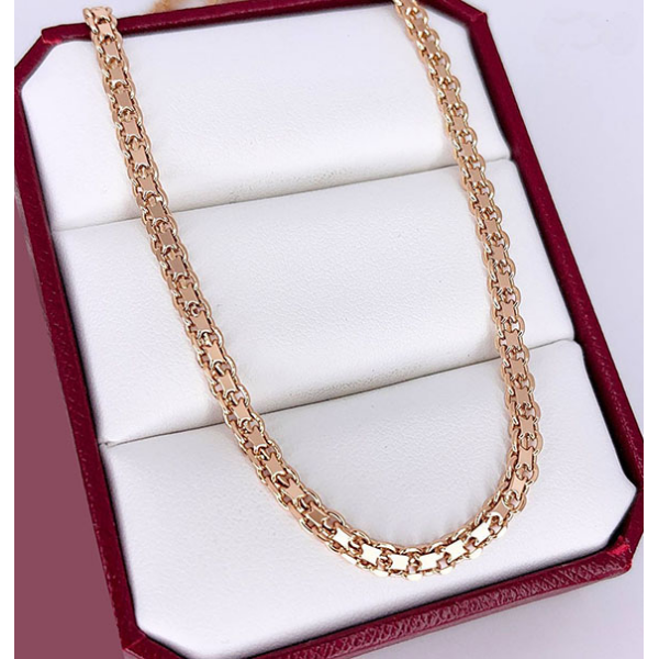 Позолоченный гипоаллергенный сплав (покрытие — из золота 585 пробы). Размер 50 см, ширина 4 мм.