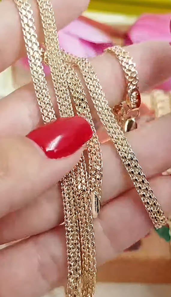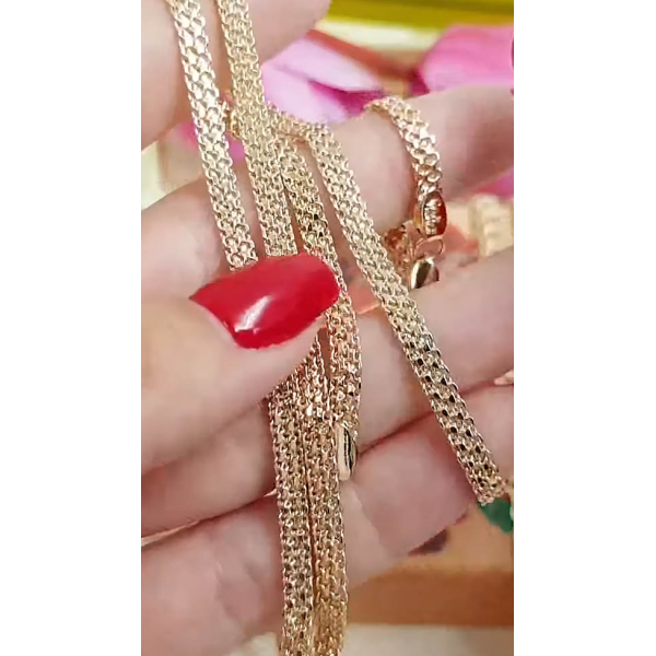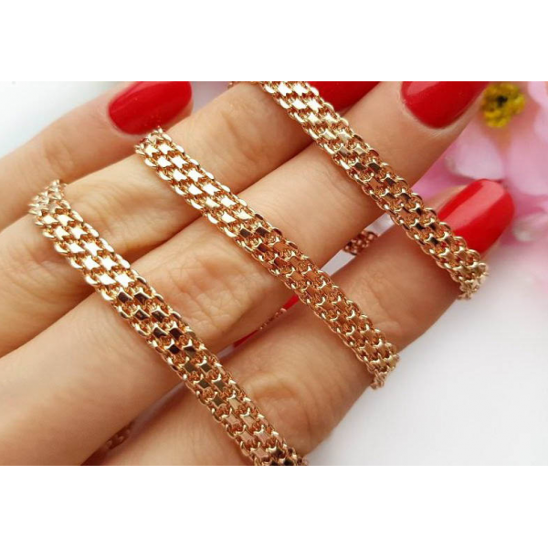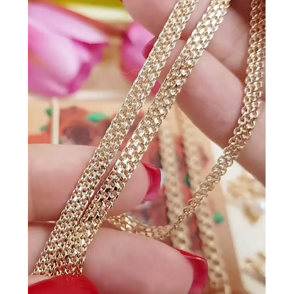 Ювелирный сплав, гипоаллергенное покрытие из золота 585 пробы. Длина цепи 50 см, ширина 6 мм. Ниже на видео вы можете увидеть эту цепь в движении.