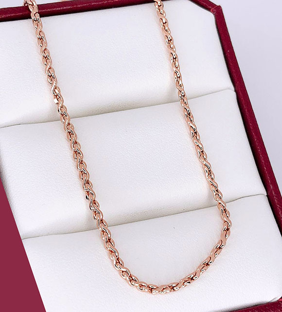 Гипоаллергенный сплав, покрытие выполнено из золота 585 пробы. Длина 55 см, ширина цепи 2 мм.