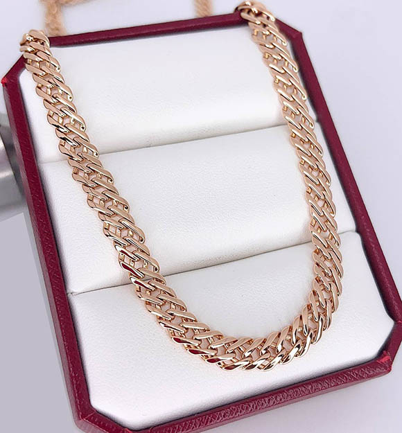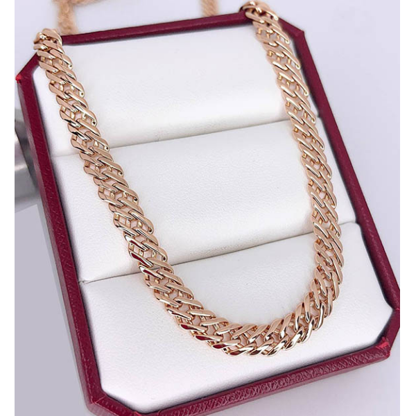 Гипоаллергенная бижутерия. Ювелирный сплав, покрытие — золото 585 пробы. Размер 55 см, ширина цепочки 6 мм.