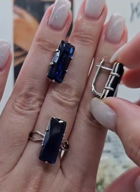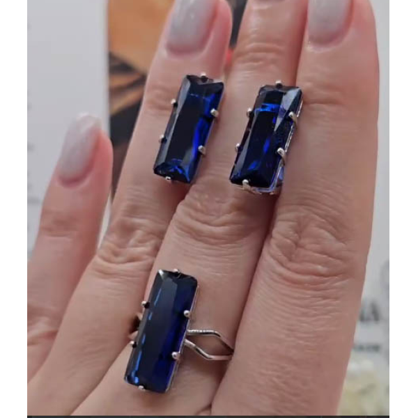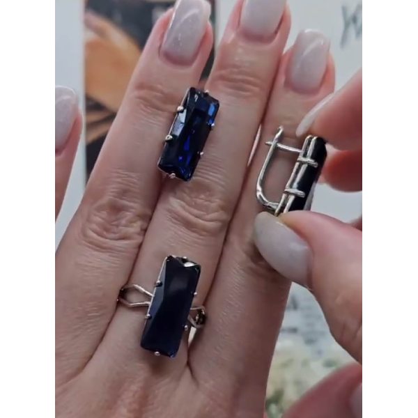 Не вызывающая аллергии бижутерия. Ювелирный сплав, покрытие — родий, вставки — фианиты. У серег английский замок. Размеры кольца: 17; 18; 19; 20.