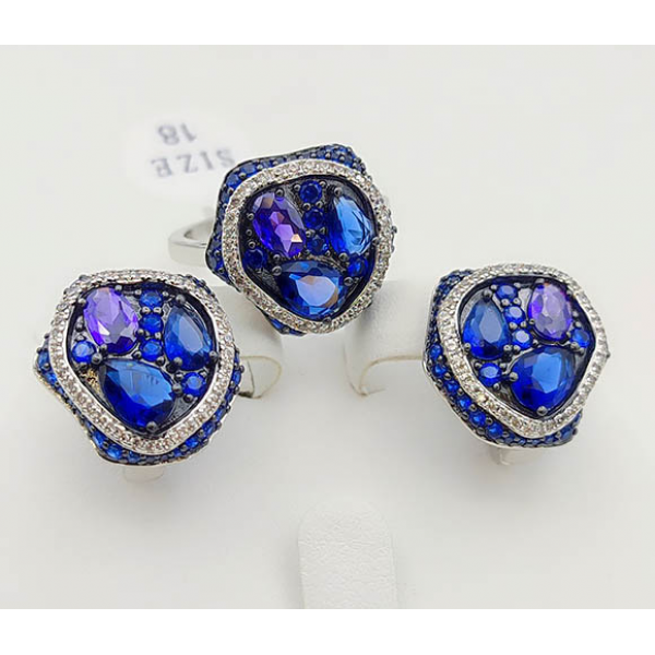 Гипоаллергенный сплав, покрытие выполнено из родия и черного родия, вставки — фианиты. Длина серег 1,9 см, английский замок. Размеры кольца: 17; 18; 19; 20.