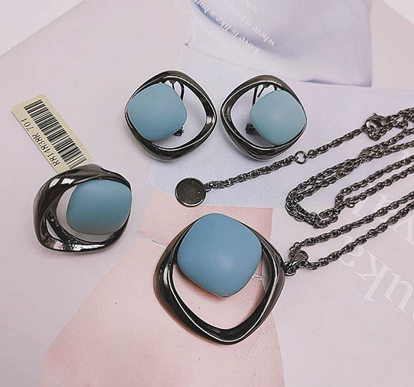 Гипоаллергенный сплав, покрытие выполнено из черного родия, вставки — имитация натурального камня. У серег итальянский замок. Размер кольца: 17 (в наличии); 18 (в наличии); 19 (в наличии); 20 (под заказ).