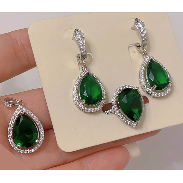 Гипоаллергенная бижутерия. Ювелирный сплав, покрытие выполнено из родия, вставки — фианиты. У серег английский замок. Размеры кольца: 19. Остался 1 комплект.
