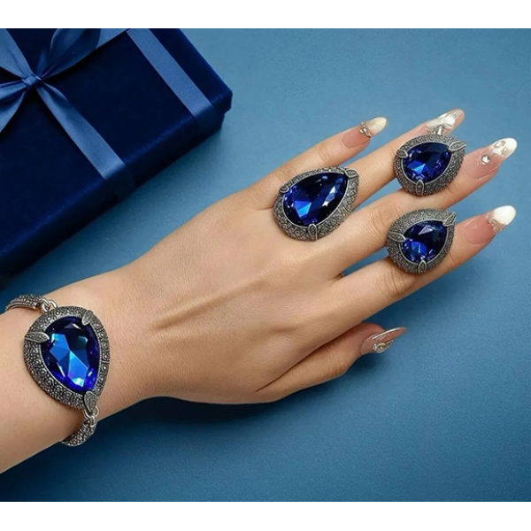 Не вызывающая аллергии бижутерный сплав, вставки — фианиты. У серег итальянский замок. Размеры кольца: 17; 18; 19; 20. Серьги, кольцо или браслет из этого набора можно купить и отдельно.
