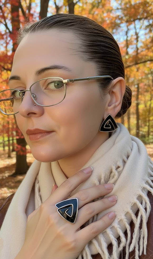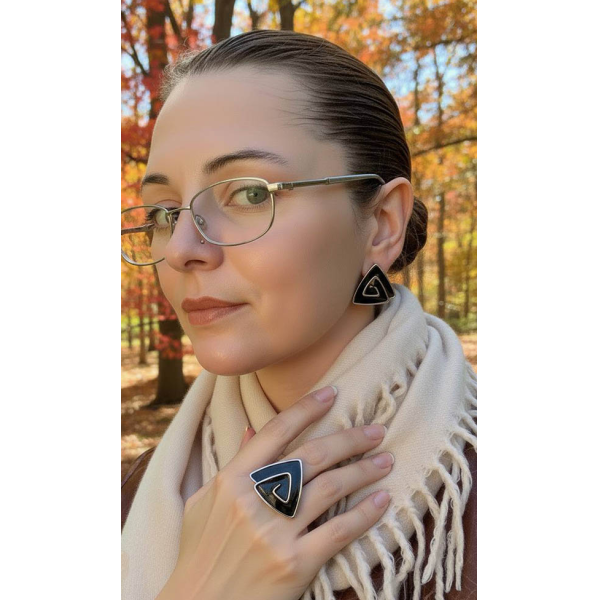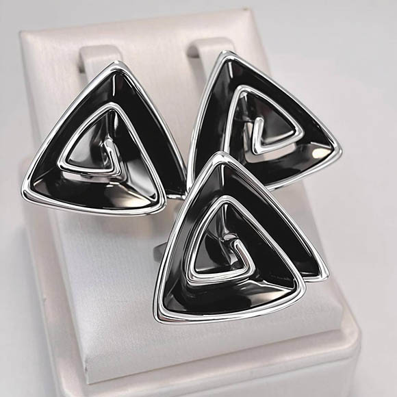 Не вызывающие аллергии украшения. Бижутерный сплав, вставки — черная эмаль. У серег итальянский замок. Размеры кольца: 18. Остался 1 набор.