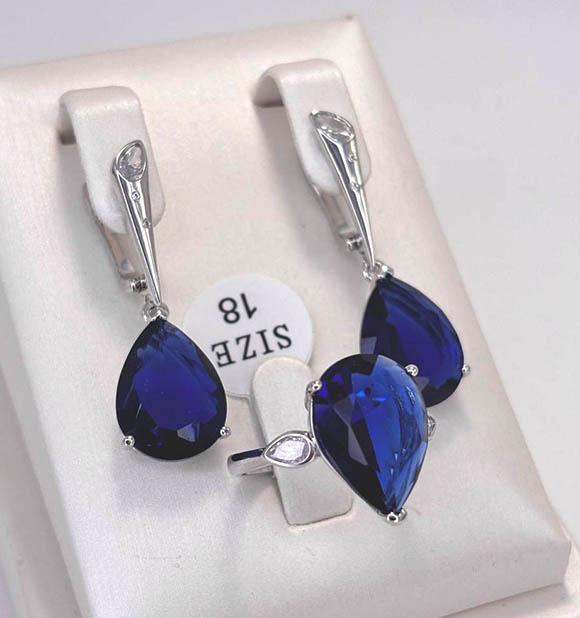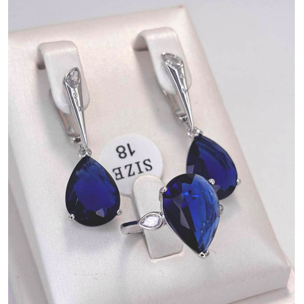 Гипоаллергенная бижутерия. Ювелирный сплав, покрытие — родий, фианитовые вставки. Длина серег 3,7 см, английский замок. Размеры кольца: 19. Остался 1 комплект.
