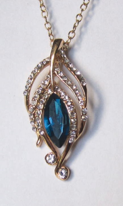 Кулон с цепочкой (размеры кулона: ширина — 19 мм, высота — 40 мм). Гипоаллергенная бижутерия, покрытие кулона и цепочки — желтое золото (золото 750 пробы). Вставка изделия — фианиты. Длина цепочки 40+5 см. Осталось 2 штуки.