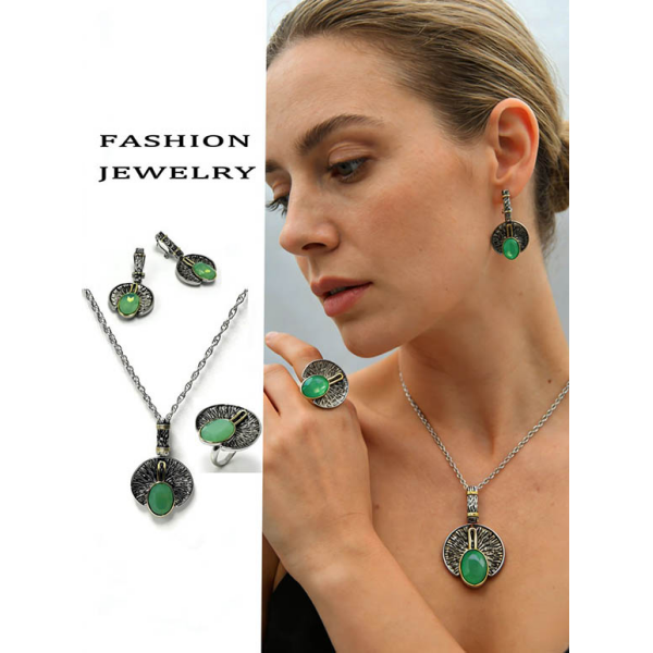 Гипоаллергенный бижутерный сплав, вставки — ювелирное стекло. Высота серег 4,8 см, итальянский замок. Размер кольца: 17; 18; 19; 20. Серьги, или кольцо, или колье из этого комплекта можно купить отдельно.