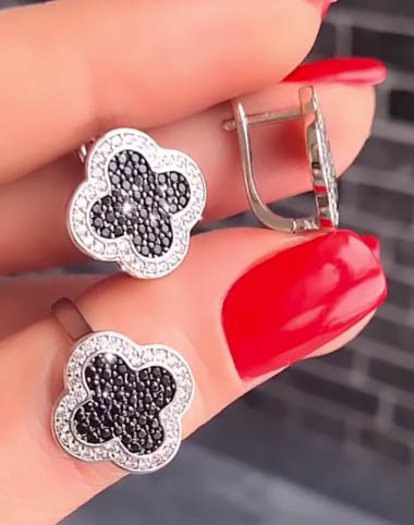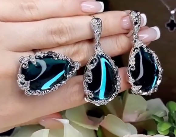 Не вызывающая аллергии бижутерия. Ювелирный сплав, покрытый родием, вставки — ювелирная смола. У серег английский замок. Размеры кольца: 17; 18; 19; 20. Вставки из ювелирной смолы красиво переливаются, играя цветом.