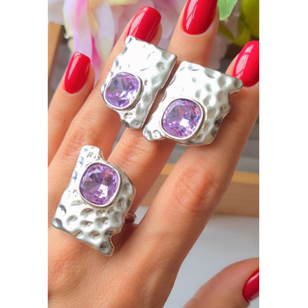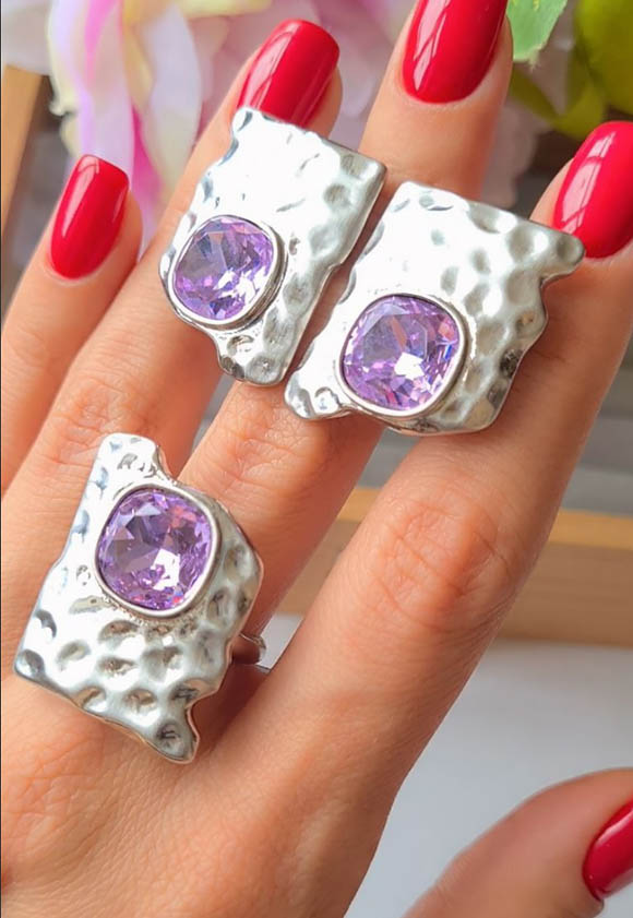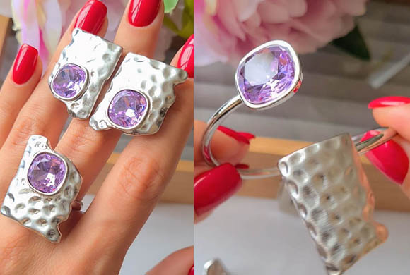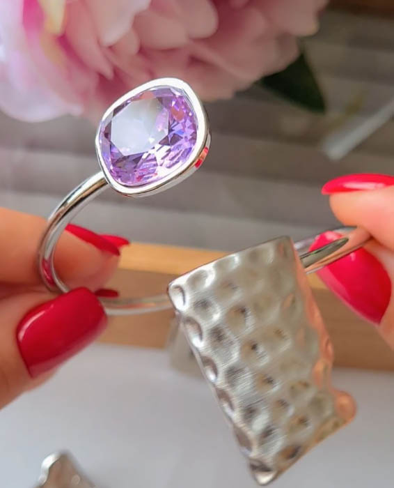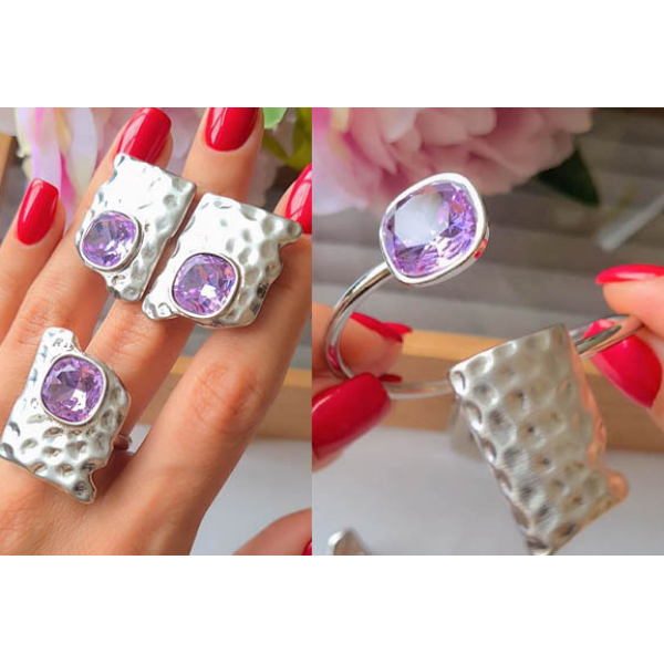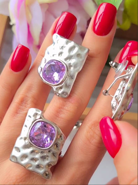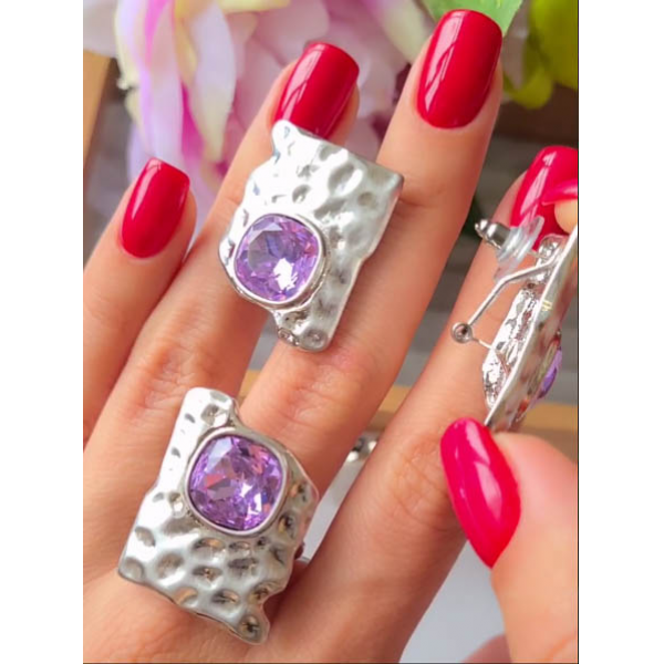 Родированный гипоаллергенный сплав, фианитовые вставки. Длина серег 3 см, итальянский замок. Размеры кольца: 18; 19. Браслет безразмерный.