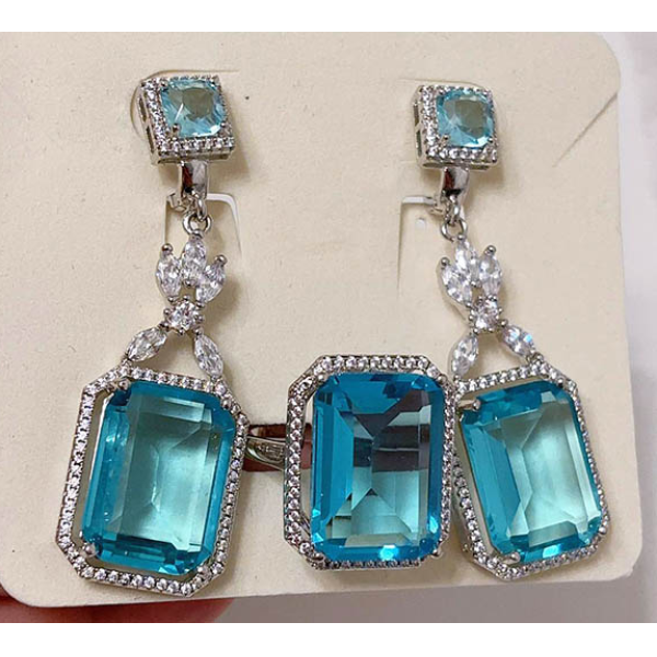 Не вызывающая аллергии бижутерия. Ювелирный сплав, покрытый родием, фианитовые вставки. У серег английский замок. Размеры кольца: 19. Остался 1 комплект.