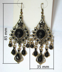 Гипоаллергенный ювелирный сплав. Вставка — пластик. Замок петля (серьга удерживается в мочке уха удлиненной петлей с силиконовым фиксатором). Высота 85 мм, ширина 35 мм.