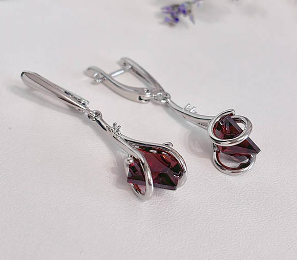 Гипоаллергенная бижутерия. Покрытый родием ювелирный сплав, вставки выполнены из фианитов. У серег английский замок.