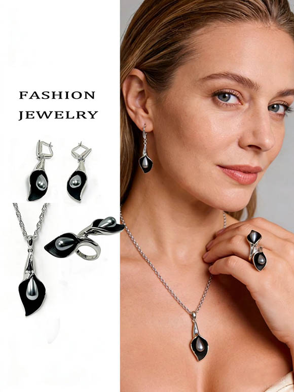 Гипоаллергенная бижутерия. Ювелирный сплав, покрытие — родий и черный родий, вставки — жемчуг. У серег английский замок. Размеры кольца: 17; 18; 19; 20. Серьги, кольцо или кулон с цепочкой можете приобрести отдельно.