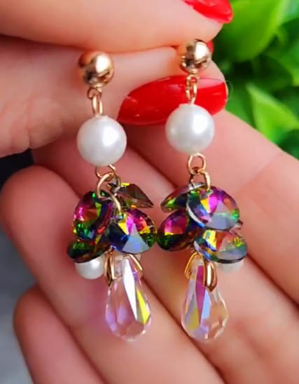 Гипоаллергенная бижутерия. Покрытый золотом 585 пробы ювелирный сплав, вставки — жемчуг и кристаллы Сваровски. Высота 4,4 см, замок гвоздик.