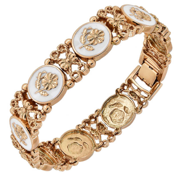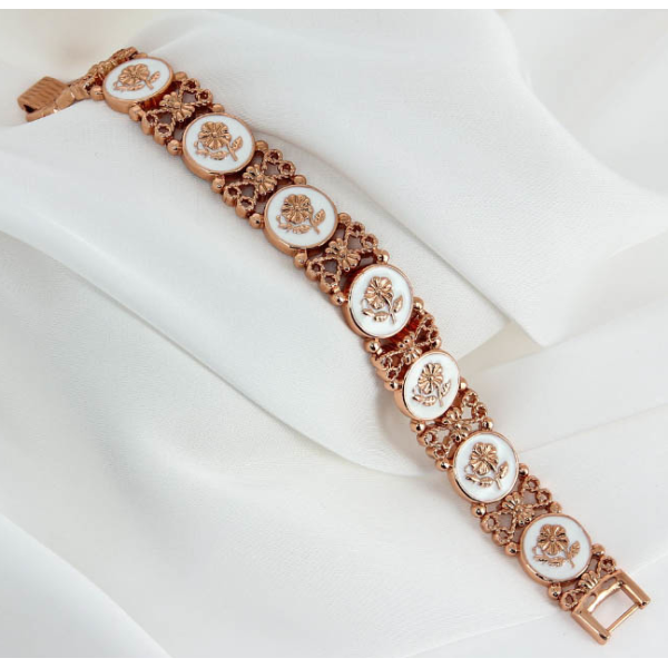 Ювелирный сплав, гипоаллергенное золотое покрытие. Длина 18,5 см, ширина 1,4 см.