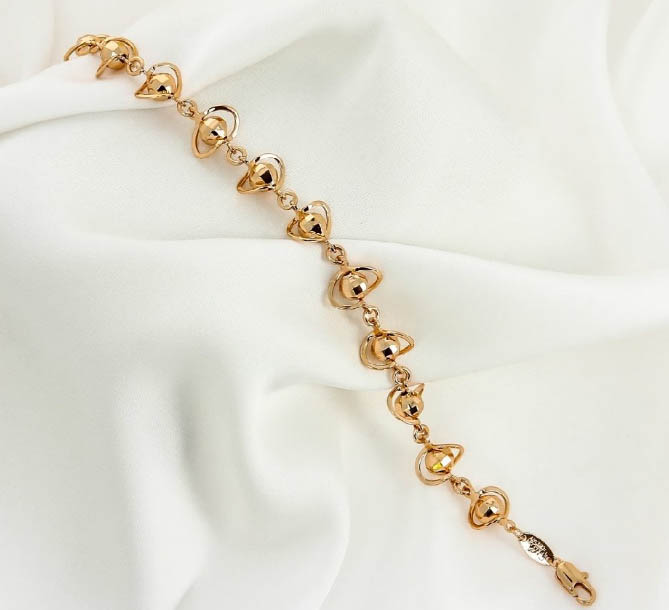Гипоаллергенная бижутерия. Покрытый золотом 585 пробы ювелирный сплав. Длина браслета 19+4 см, ширина 8 мм.