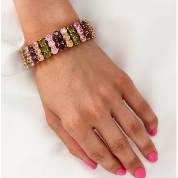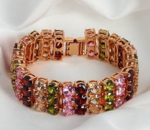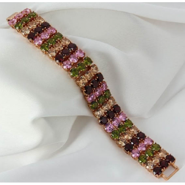 Не вызывающая аллергии бижутерия. Ювелирный сплав со вставками из фианитов. Длина 18 см, ширина браслета 2 см.
