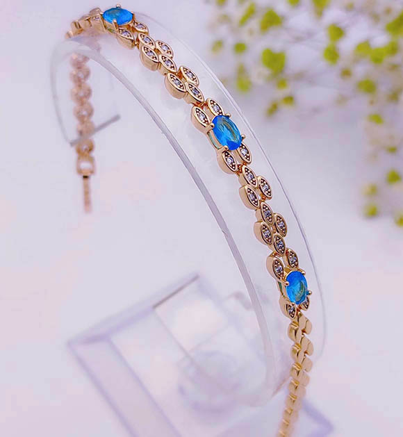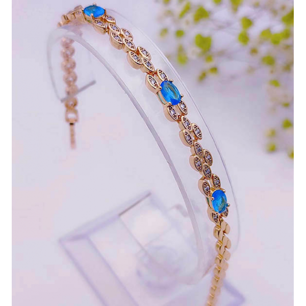 Ювелирный сплав, гипоаллергенное золотое покрытие (из золота 585 пробы), вставки — фианиты. Размер 17 см плюс добор 2 см.