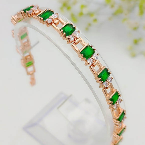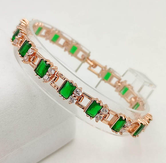 Ювелирный сплав, гипоаллергенное золотое покрытие (из золота 585 пробы), вставки — фианиты. Размер браслета 18,5 см, ширина 7 мм.