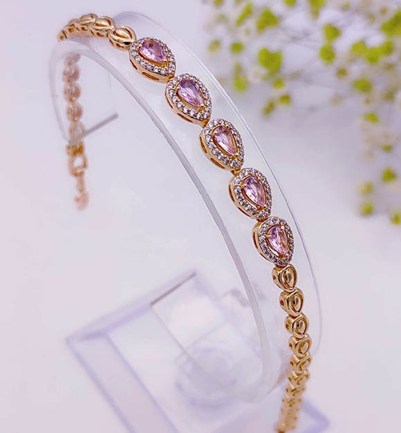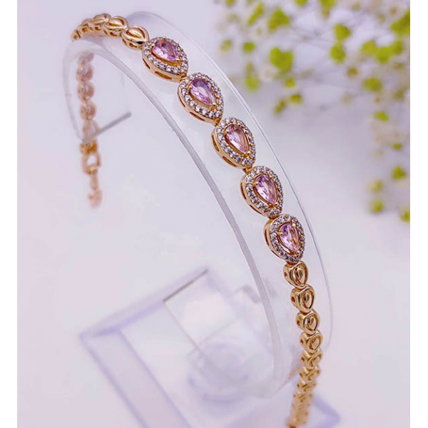 Ювелирный сплав, гипоаллергенное золотое покрытие (из золота 585 пробы), вставки — фианиты. Размер 17 см плюс добор 2 см.