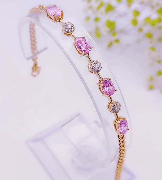 Гипоаллергенная бижутерия. Ювелирный сплав, покрытие — золото 585 пробы, вставки выполнены из фианитов. Длина 17 см плюс добор 3 см.