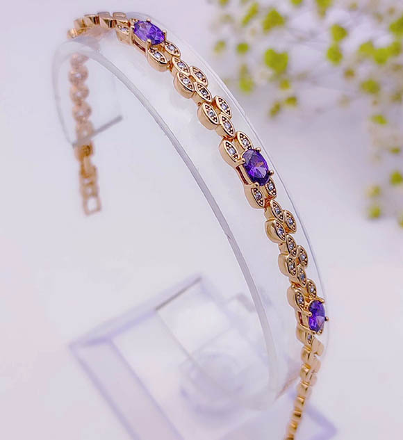 Позолоченный гипоаллергенный сплав (покрытие —золото 585 пробы), вставки — фианиты. Длина браслета 17 см плюс добор 2 см.