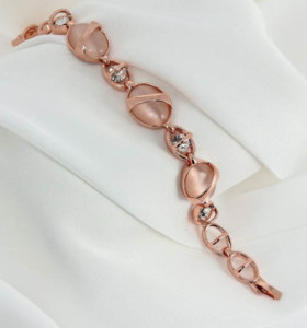 Гипоаллергенная бижутерия. Покрытый золотом 585 пробы ювелирный сплав, вставки — фианиты и имитация натурального камня. Длина 18,5 см, ширина 13 мм.