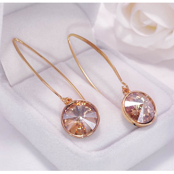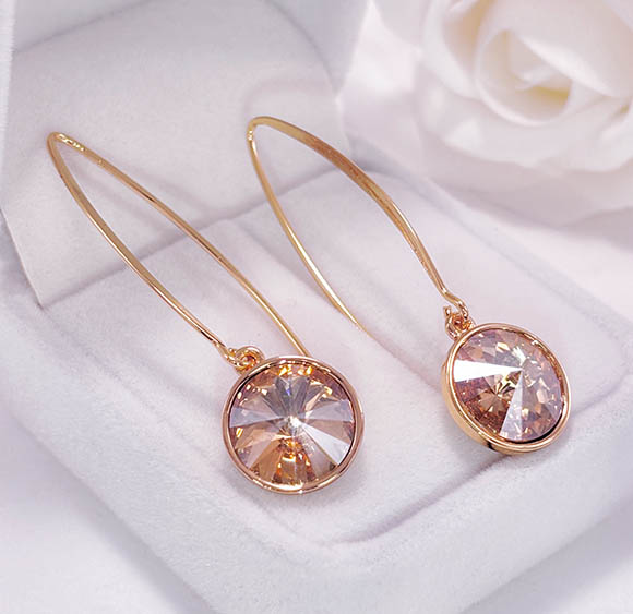 Гипоаллергенный сплав, покрытие выполнено из золота 585 пробы, вставки — кристаллы Swarovski. Длина 5 см, замок петля.