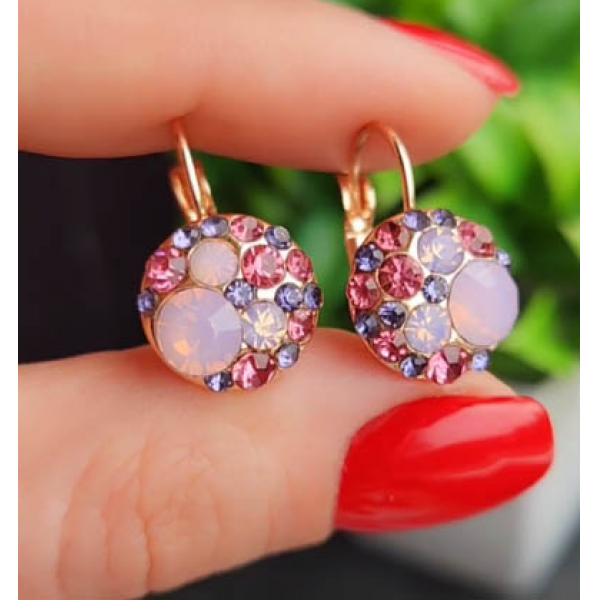 Ювелирный сплав, гипоаллергенное золотое покрытие (из золота 585 пробы), вставки выполнены из кристаллов Сваровски. Размер 2 cм, замок левербек.