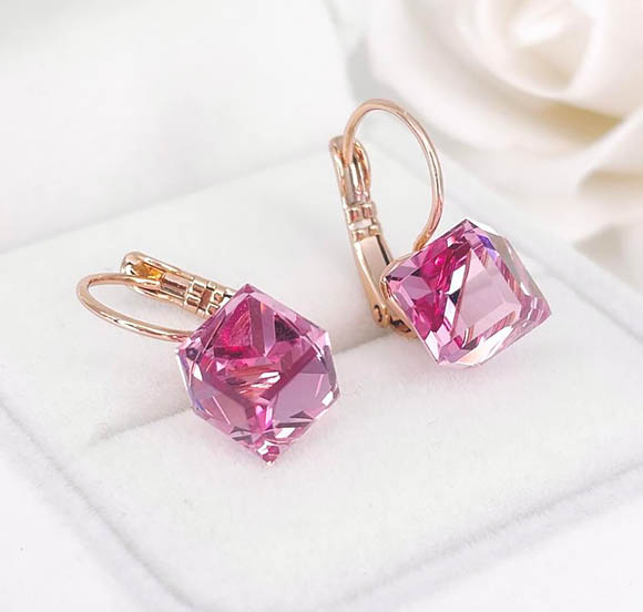 Гипоаллергенная бижутерия. Покрытый золотом 585 пробы ювелирный сплав, вставки — кристаллы Swarovski. Высота 2 см, замок левербек.