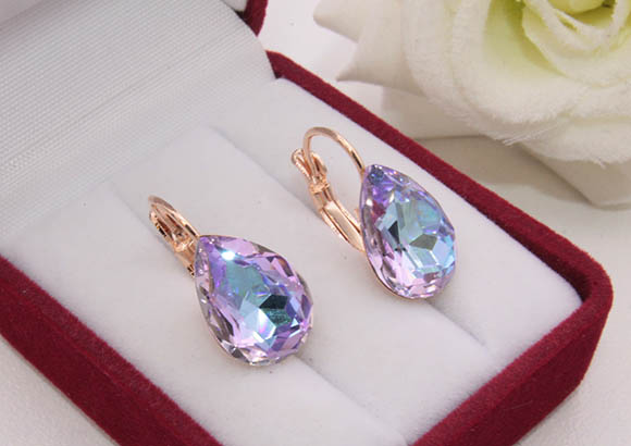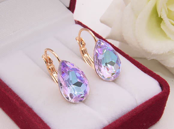 Позолоченный гипоаллергенный сплав (покрытие — золото 585 пробы), вставки — кристаллы Сваровски. Длина серег 1,9 см, размер кристалла 1,4 см, замок левербек.