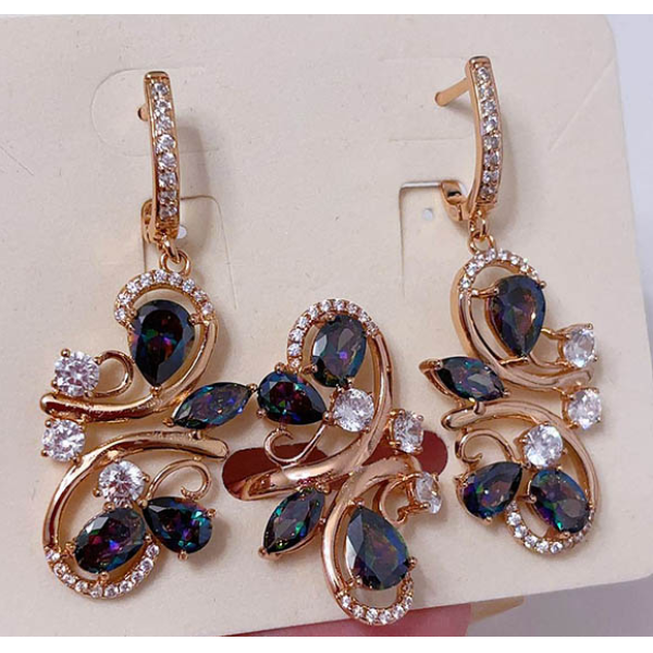 Гипоаллергенная бижутерия. Ювелирный сплав, покрытие выполнено из золота 585 пробы, вставки — фианиты. У серег английский замок. Размеры кольца: 18. Остался 1 набор.