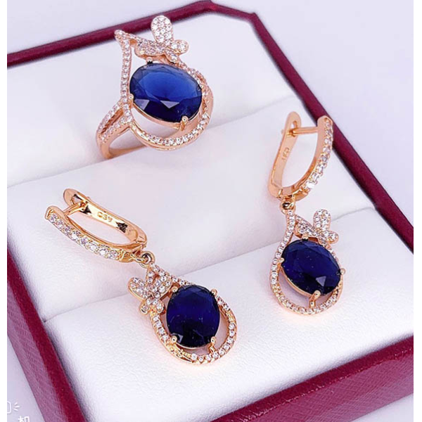 Гипоаллергенная бижутерия. Ювелирный сплав, покрытие выполнено из золота 585 пробы, вставки — фианиты. Высота серег 3,8 см, английский замок. Размеры кольца: 18. Остался 1 комплект.