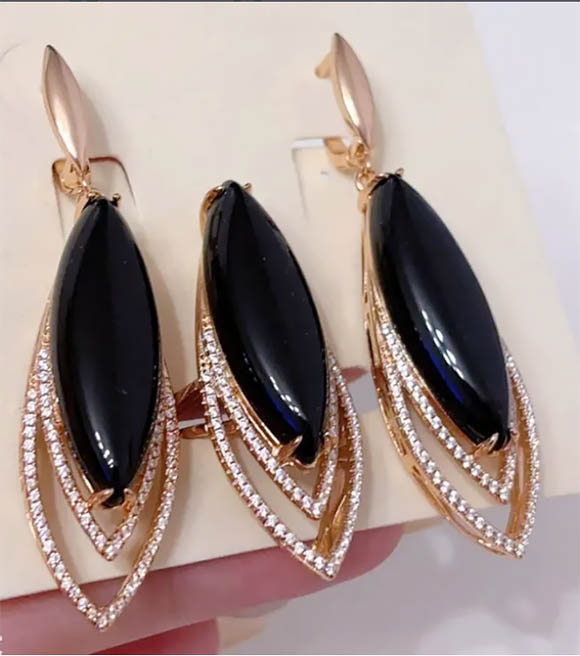 Гипоаллергенный сплав, покрытие из золота 585 пробы, вставки — фианиты. У серег английский замок. Размеры кольца: 18. Остался 1 набор.