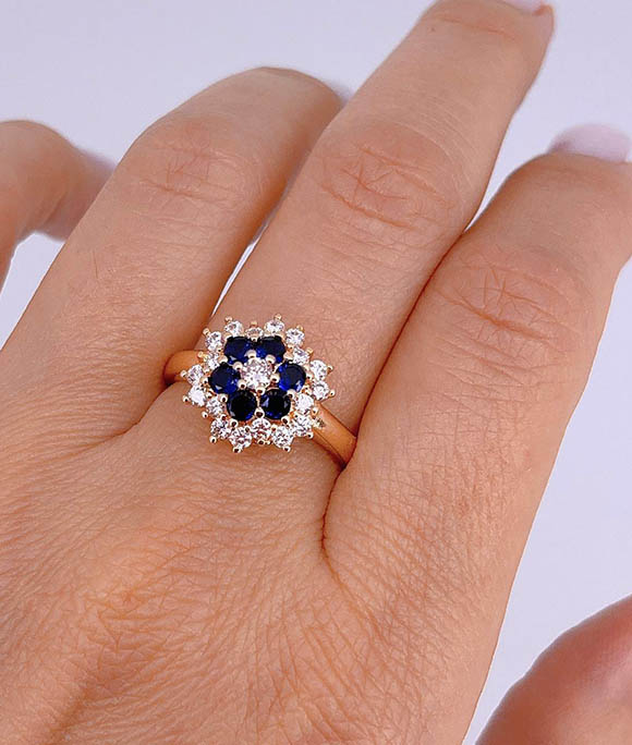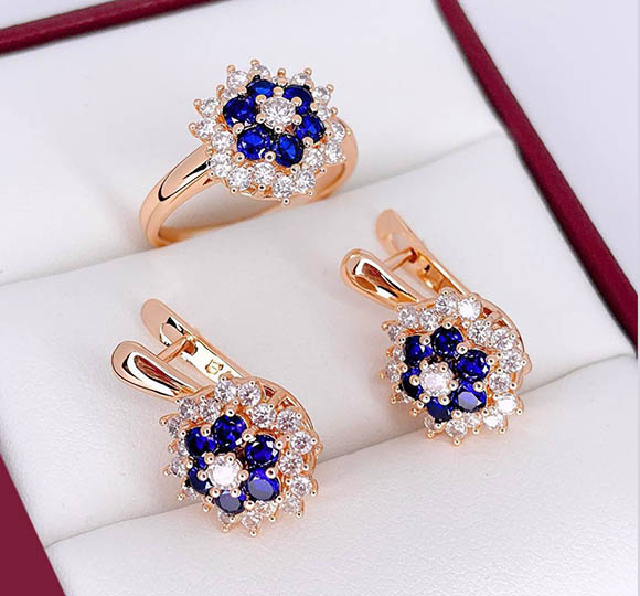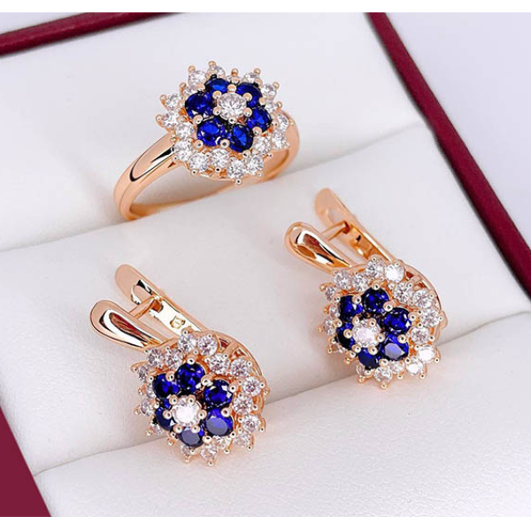 Не вызывающая аллергии бижутерия. Ювелирный сплав, покрытый золотом 585 пробы, вставки — фианиты. У серег английский замок. Размеры кольца: 17; 19. Осталось 2 комплекта.