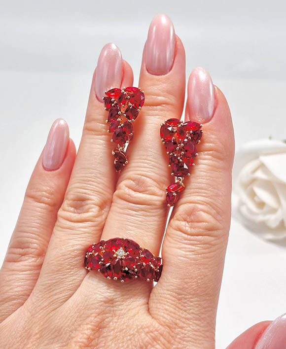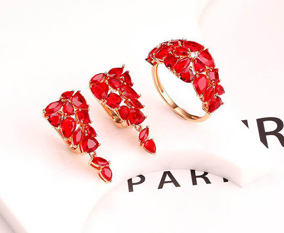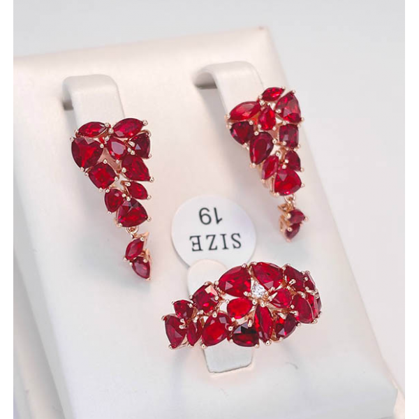 Гипоаллергенная бижутерия. Ювелирный сплав, покрытие выполнено из золота 585 пробы, вставки выполнены из фианитов. Размер серег 2,7 см, английский замок. Размеры кольца: 18; 19; 20. Осталось 3 комплекта.