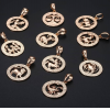 Гипоаллергенная бижутерия. Ювелирный сплав, покрытие — из золота 585 пробы. Диаметр кулона 2 см + петелька 0,7 см. В комментариях к заказу указывайте, пожалуйста, какой из знаков Зодиака вам нужен.