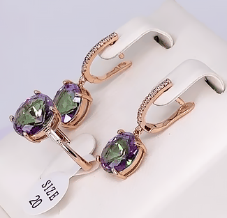 Позолоченный гипоаллергенный сплав (покрытие — из золота 585 пробы), вставки — фианиты. У серег английский замок. Размеры кольца: 20. Остался 1 набор.