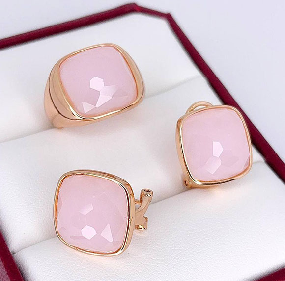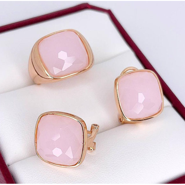 Ювелирный сплав, гипоаллергенное золотое покрытие (из золота 585 пробы), вставки — фианиты. Размер серег 1,6 см, английский замок. Размеры кольца: 17. Остался 1 набор.