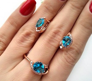 Гипоаллергенный сплав, покрытие из золота из золота 585 пробы, фианитовые вставки. Размер серег 1,4 см, размеры кольца: 20.