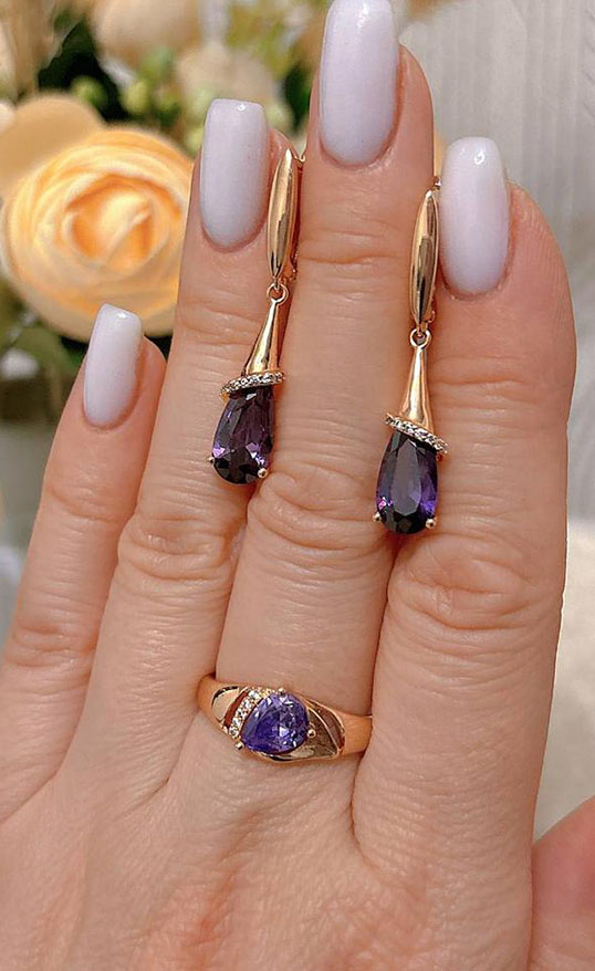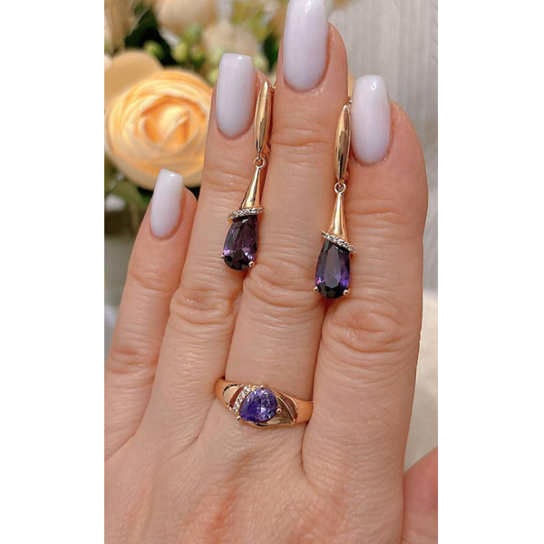 Гипоаллергенная бижутерия. Покрытый золотом 585 пробы ювелирный сплав, вставки — фианиты. У серег английский замок. Размеры кольца: 19. Остался 1 набор.
