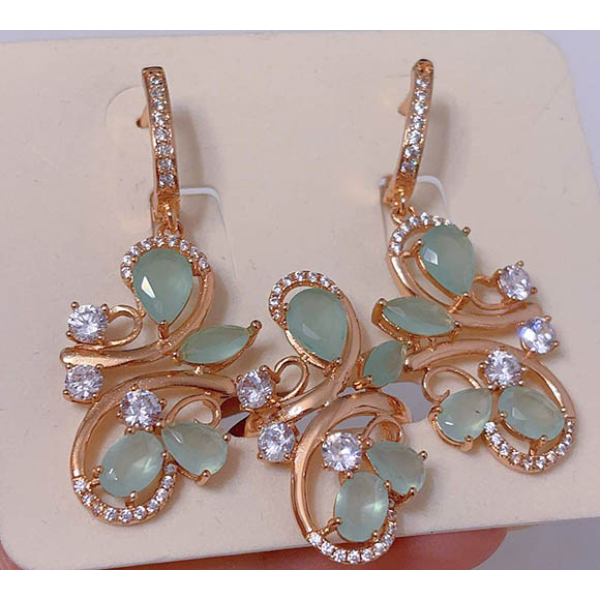 Не вызывающая аллергии бижутерия. Ювелирный сплав, покрытие — золото 585 пробы, вставки — фианиты. У серег английский замок. Размеры кольца: 18. Остался 1 комплект.