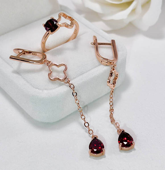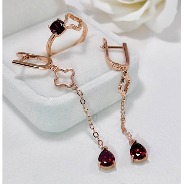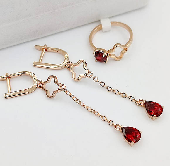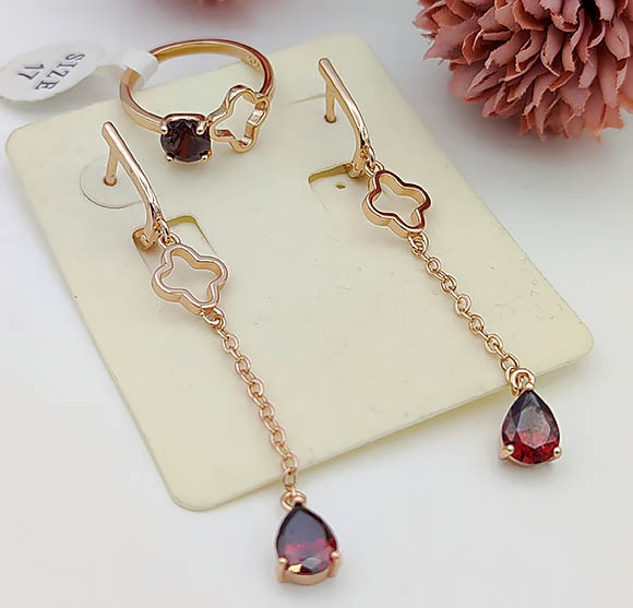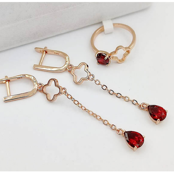 Ювелирный сплав, гипоаллергенное покрытие выполнено из золота 585 пробы, фианитовые вставки. Длина серег 6,4 см, английский замок. Размеры кольца: 17. Остался 1 набор.