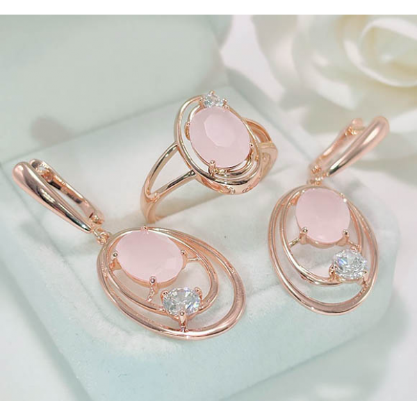 Гипоаллергенный сплав, покрытие выполнено из золота 585 пробы, вставки — фианиты. Размер серег 4,2 см, английский замок. Размеры кольца: 19,5. Остался 1 комплект.