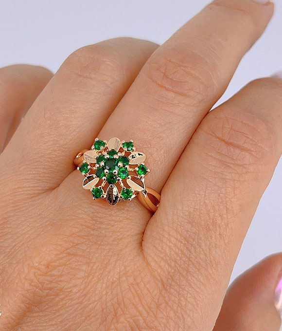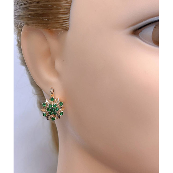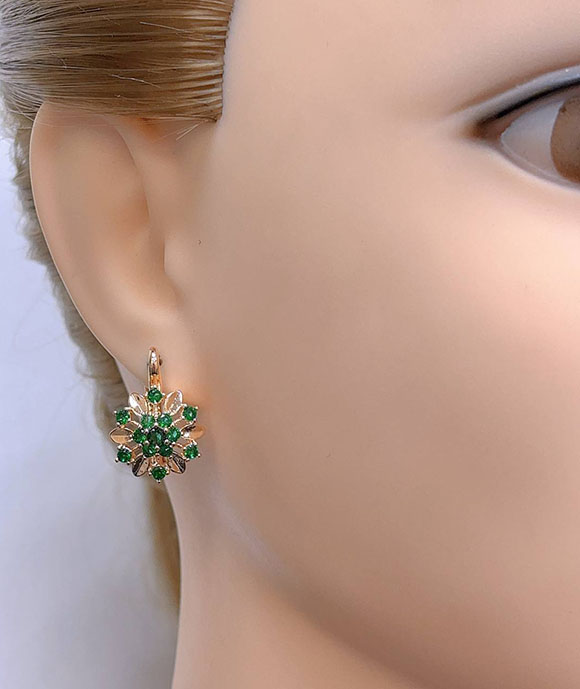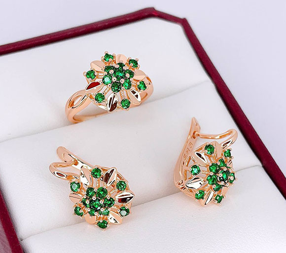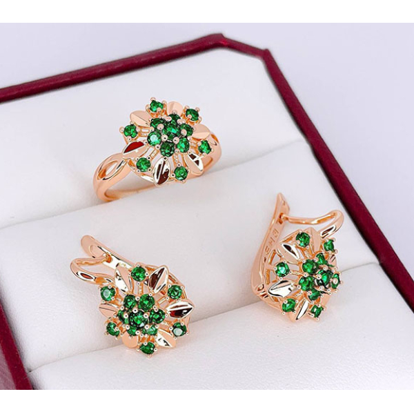 Гипоаллергенная бижутерия. Ювелирный сплав, покрытие выполнено из золота 585 пробы, фианитовые вставки. Высота серег 2,1 см, английский замок. Размеры кольца: 19. Остался 1 комплект.