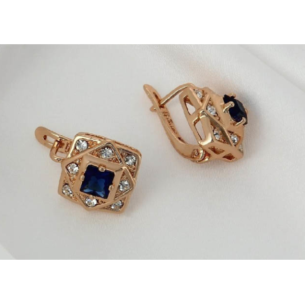 Гипоаллергенная бижутерия. Покрытый золотом 585 пробы ювелирный сплав, фианитовые вставки. Размер серьги 1,7 см.